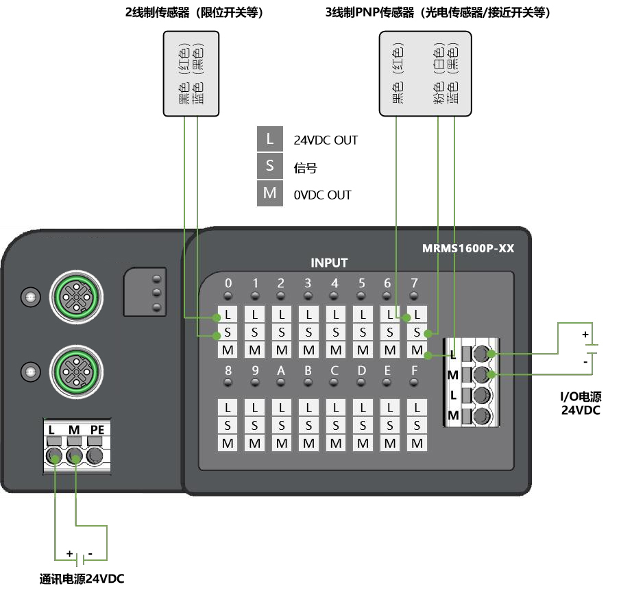 面板式快接線分布式I/O,EtherCAT通訊,2xM12,可級聯(lián);數(shù)字量16入 PNP,24VDC,歐式彈簧端子;導(dǎo)軌安裝&打孔安裝(下單時需備注)
